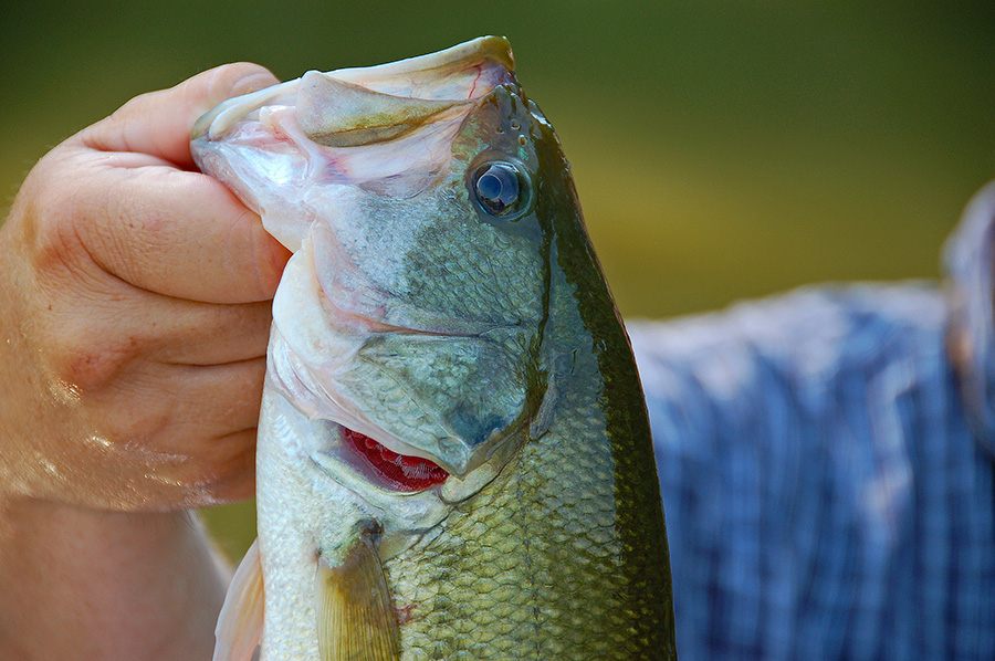 Slow down and soak a soft plastic either Neko-rigged or on a Carolina rig. And if you believe you’re going slow enough, slow down some more.