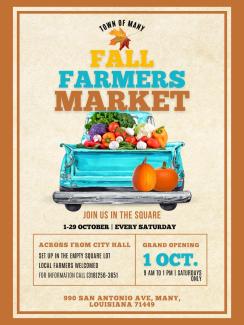 Saturday, October 15, 2022 990 San Antonio Ave Many, LA 71449 United States The weather is perfect to come out and enjoy a morning with area vendors. This is a free event. First come. First serve. Every Saturday in the month of October