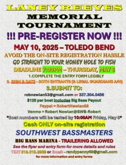 For more information text 318-315-2939 or email randypenny69@gmail.com for more information and entry forms