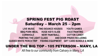 Saturday, March 25, 2023 United States Under The Big Top - 105 Peterson - Many La (318) 256-2871 https://www.facebook.com/profile.php?id=100089950592327 Free to our community from Calvary in Many La.