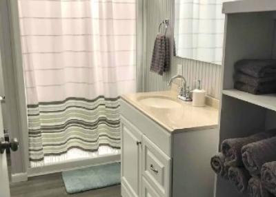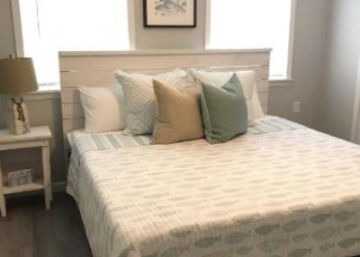 The Blue Heron has one master bedroom (king bed) , a futon queen bed and one bath. It also has a fully stocked kitchen-no need to bring anything but food!