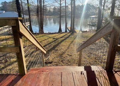 Guests can park in the driveway or in front of the house. There is a gravel bed in the yard that spans from the driveway to the north window which provides ample room to park boat & trailer. Conveninet electrical outlet for charging boat is near the steps going into the screen porch. The property is accessible by boat, even with the water level at 165, which is 7 ft. below full pool.