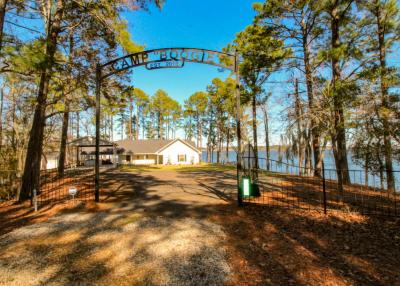 In the yard, there is ample parking with a turn around driveway, two car carport 24×40 carport large enough to leave two boats and vehicles hooked up. On the side of the house is a sitting area with recessed lighting, outdoor TV, BBQ pit and outdoor seating. The yard has a burn pit, pier, boathouse and plenty of shoreline to fish from without leaving the bank. The back porch has a sitting area and a fenced in area that is great to keep small children secure.