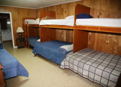 A waterfront property with a panoramic view of Toledo Bend Lake.  This lodge has two sleeping areas for a minimum of 12 guests, two bathrooms, two showers and a large living/dining/sitting area that includes a TV and a pool table.  A large covered patio is furnished for enjoying the outdoors and evening sunsets. The kitchen includes commercial size stove and refrigerator.  All dishes, cookware and linens are included. The property is fenced with security cameras on site and spacious parking.