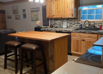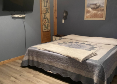 Kick back and relax in this peaceful little cabin on the lake. Watch the sunset on the patio. Everyone loves our media room with a 120 inch screen and projector. It's like having your own theater!
