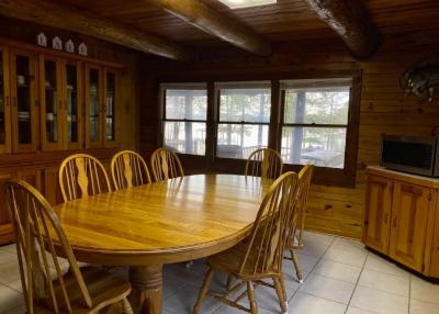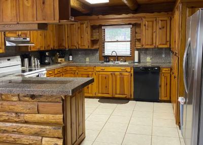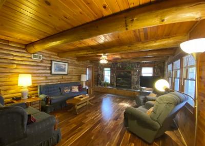Beautiful and rustic, two-story log cabin on a quiet United Bay cove. Great for a fishing trip or family getaway! With four bedrooms and two full baths, the cabin sleeps 9 comfortably. The roomy cabin has two living areas with flat screen TVs, well-appointed kitchen, and large dining room. The Log Cabin has 2,288 sq ft of space to enjoy and sits on a site just under an acre. There is an outdoor deck with grill, in addition to the dock. The bottom floor consists of living, dining, kitchen, laundry closet, master bedroom and master bath. Flooring on the bottom floor is tile and wood. Upstairs consists of 3 bedrooms, 1 bathroom, and an additional living room. Upstairs is predominantly carpeted in the living areas and the upstairs bathroom is tile. The cabin boasts a cozy 70's vibe we try to maintain. Our nickname for the place is “Paw Paw’s cabin.” Many of the items of decor are special to our family, we hope you enjoy!