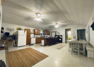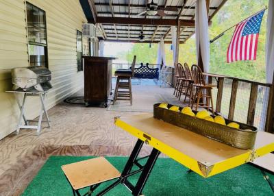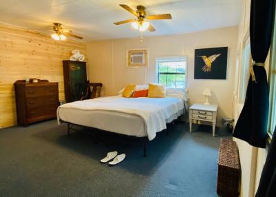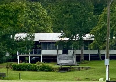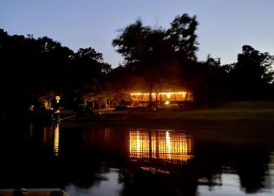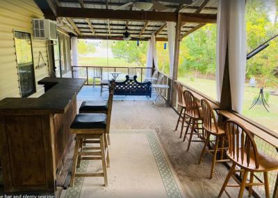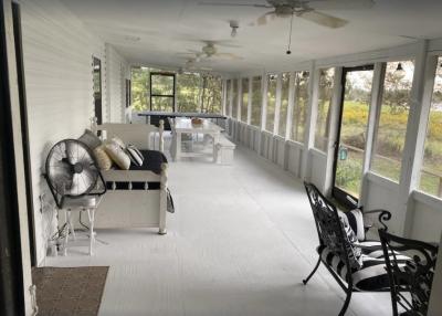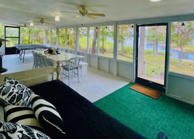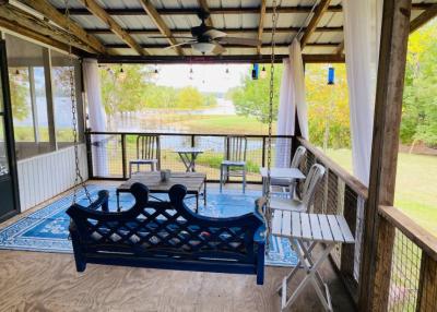 Lake front corner property with screened porch on the lakeside as well as a wraparound open porch. This beautiful 2 acre property boasts 3 bedrooms, giant kitchen and living room and a bathroom and, in a surprising twist... a basement! The property has several secluded sitting areas surrounded by fruit and nut trees with great fishing in our cove and off the dock. The property has a private boat launch and floating dock.