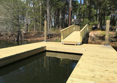 3 bdrm, 2 bath lodge, sleeps up to 10. Need a getaway in the woods? Slaughter Creek Lodge is the destination for you! This 3 bedroom/2 bath lodge sleeps up to 10 people. We have 2 downstairs bedrooms that each have a queen bed. One upstairs bedroom that has 2 doubles, and there’s a double bed on the loft. We have a private dock for fishing and plenty of room to accommodate your vacation crew! Our guest usually launch their boats at Cypress Bend which is approximately 5 minutes south of us by water. We have DIRECTV. No wifi.
