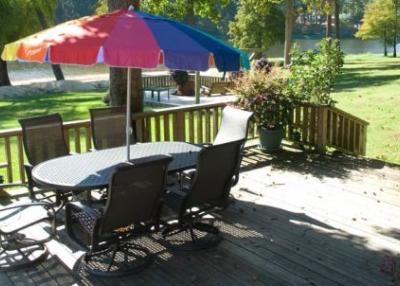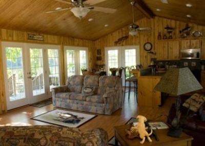 A cozy den and nice kitchen were recently added to Stoney Creek. The cottage also features a large deck area with enough seating for guests to enjoy any celebration. A fire pit close to the water is a great feature for late afternoon views of the sun setting, and there is a beach area with lots of white sand for sunbathing or children to play.