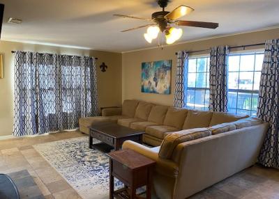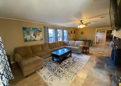 Newly renovated! Relax in this very spacious waterfront home. There is very large patio overlooking the lake. There is also a nice wood swing set for the children to play on. This home also has a large game room with a pool table. This is the perfect home for families wanting to get away from it all or fishermen who can’t wait to get out on the water. Public boat launches are within minutes of this home. House is just 5 minutes from grocery, restaurants, banks and gas! You will LOVE this home!