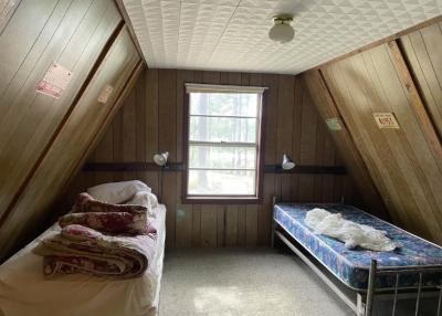 Relax on the deck - perfect for a fish fry, or to just sit and listen to the birds and crickets. The A~Frame offers one full sized bed downstairs and 4 twin beds up, full kitchen, bathtub, and a fish cleaning station. The Cottage is not on the water but is 1 mile from the launch at Kites Landing.