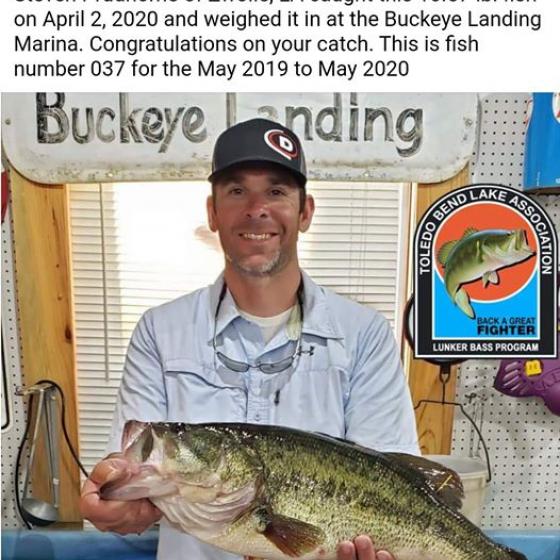 Fisherman Name Steven Prudhomme Date Caught Saturday, May 2, 2020 Weight 10.57 Length 0.00 Girth 0.00 Home Town Zwolle, LA