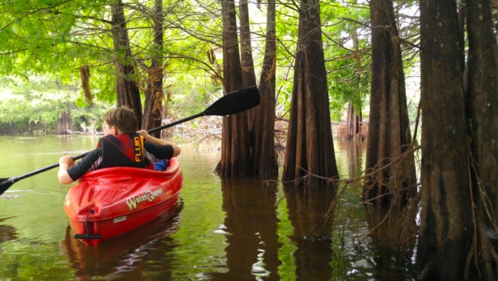 Hug the shoreline and weave throughout the beautiful cypress trees for an entirely new perspective. You might even spot some local wildlife also enjoying the water. You can bring your own and launch from one of the state parks or rent one of theirs for the day.