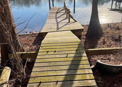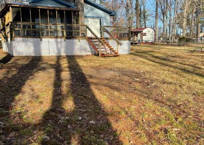 Guests can park in the driveway or in front of the house. There is a gravel bed in the yard that spans from the driveway to the north window which provides ample room to park boat & trailer. Conveninet electrical outlet for charging boat is near the steps going into the screen porch. The property is accessible by boat, even with the water level at 165, which is 7 ft. below full pool.