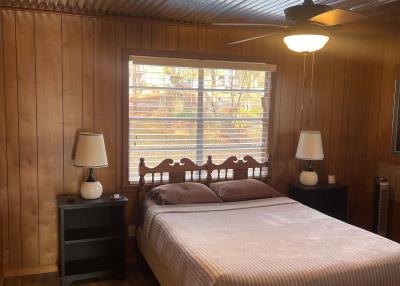 This 2 bedroom cabin is perfect for fisherman. The sliding glass doors are very convenient for bringing fishing rods inside.