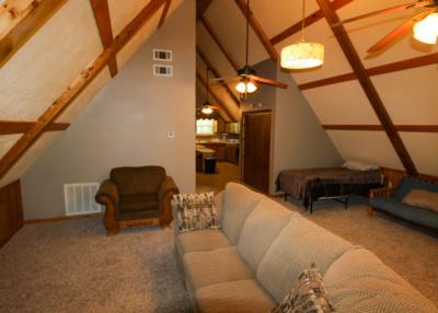 Sleep 6, with 2-twin beds, 1-Fouton and one Queen Bed. Washer/Dryer, Direct TV, Full Kitchen, Charcoal BBQ . Near Golf Course and Boat Launch.