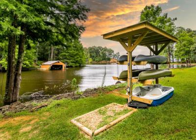 The covered outdoor patio can accommodate seating for 12+. It includes a gas propane grill for lunch or dinner cooking, a hammock for relaxing, and…. Read a book and enjoy the views of Toledo Bend on the outdoor patio or at the beach area.