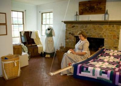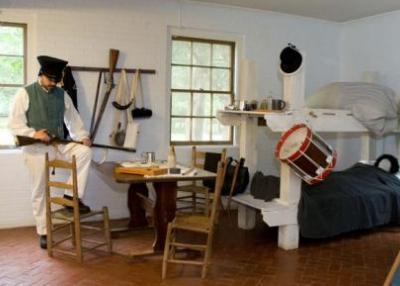 This site features the original kitchen/mess building and a reconstructed officers’ quarters that houses visitor information, interpretive exhibits and restrooms.