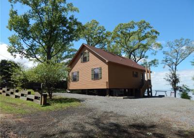 THE CABIN: The cabin is cozy and can sleep 8 people – two in each bedroom and 2 more on the sleeper sofa in the living room. The kitchen is well-equipped with utensils, pots and pans, coffee maker, toaster, etc. Upgraded stainless steel appliances make you feel right at home while you’re at the lake. The two downstairs bedrooms each have a queen size bed with their own full bathroom. The loft upstairs has a twin daybed with twin trundle and a half-bath. The living room has ample space for catching your favorite show or a movie, thanks to our flatscreen television with DirecTV. Need to check your email or pull up something on the internet? No problem because we provide free wifi at the cabin! The porch facing the lake is amazing. You can see beautiful sunsets in the evening, listen to birds and cicadas, and occasionally spot a bald eagle!