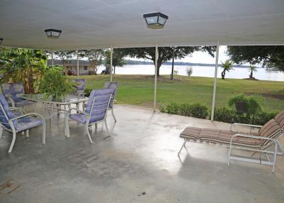 A waterfront property with a panoramic view of Toledo Bend Lake.  This lodge has two sleeping areas for a minimum of 12 guests, two bathrooms, two showers and a large living/dining/sitting area that includes a TV and a pool table.  A large covered patio is furnished for enjoying the outdoors and evening sunsets. The kitchen includes commercial size stove and refrigerator.  All dishes, cookware and linens are included. The property is fenced with security cameras on site and spacious parking.