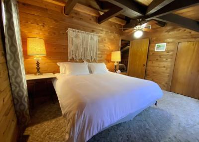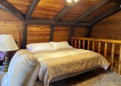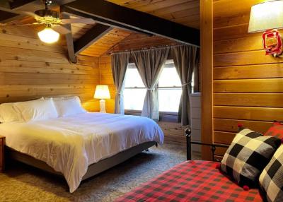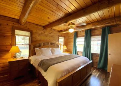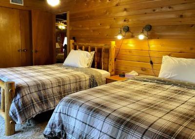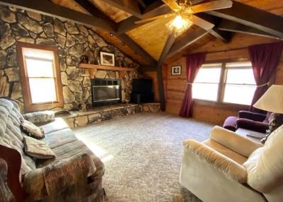 Beautiful and rustic, two-story log cabin on a quiet United Bay cove. Great for a fishing trip or family getaway! With four bedrooms and two full baths, the cabin sleeps 9 comfortably. The roomy cabin has two living areas with flat screen TVs, well-appointed kitchen, and large dining room. The Log Cabin has 2,288 sq ft of space to enjoy and sits on a site just under an acre. There is an outdoor deck with grill, in addition to the dock. The bottom floor consists of living, dining, kitchen, laundry closet, master bedroom and master bath. Flooring on the bottom floor is tile and wood. Upstairs consists of 3 bedrooms, 1 bathroom, and an additional living room. Upstairs is predominantly carpeted in the living areas and the upstairs bathroom is tile. The cabin boasts a cozy 70's vibe we try to maintain. Our nickname for the place is “Paw Paw’s cabin.” Many of the items of decor are special to our family, we hope you enjoy!