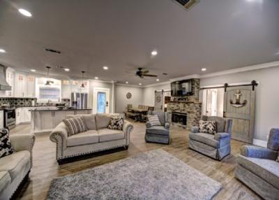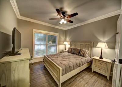 Amenities: Sleeps up to 15 people. The master bedroom called the "Captain's Quarters" has a king bed and one set of bunks and private bath with a low step in shower. Bedrooms 2 and 3 have Queen size beds, bedroom 4 also known as the "Bunk Room" has 2 sets of bunk beds. One set is full size top and bottom and the other is single size beds. Charcoal BBQ Pit is available for your use. The pier is available for fishing and tying your boat. Please use the fish cleaning area provided since cleaning fish indoors is not allowed. A Fish Fryer is also available but you must bring your own propane tank to hook up. Flat screen TVs are in all bedrooms and the living area. Wireless internet is provided. Please bring your own beach towels for outdoor use on the dock or deck. All other linens provided.