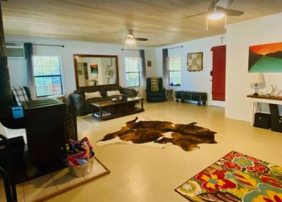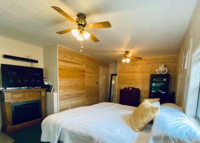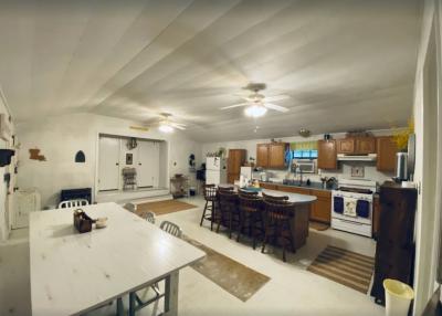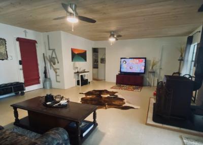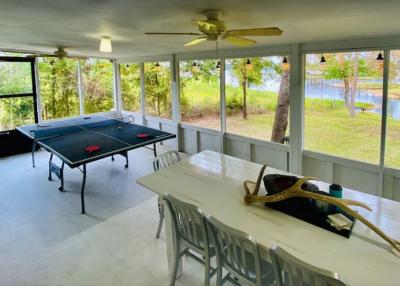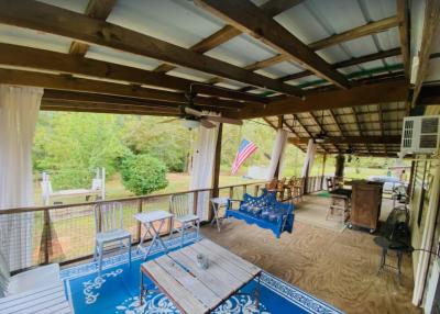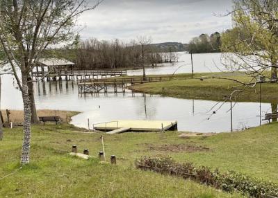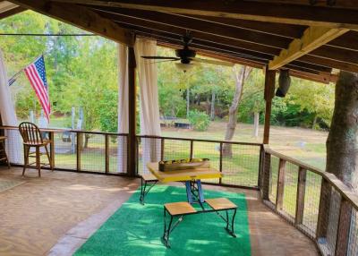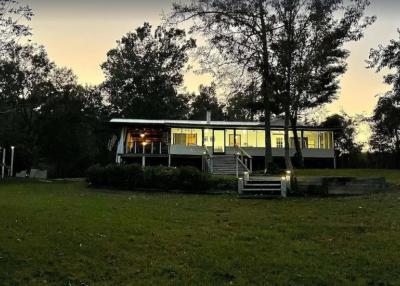 Lake front corner property with screened porch on the lakeside as well as a wraparound open porch. This beautiful 2 acre property boasts 3 bedrooms, giant kitchen and living room and a bathroom and, in a surprising twist... a basement! The property has several secluded sitting areas surrounded by fruit and nut trees with great fishing in our cove and off the dock. The property has a private boat launch and floating dock.