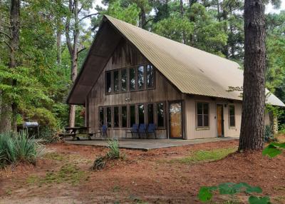 3 bdrm, 2 bath lodge, sleeps up to 10. Need a getaway in the woods? Slaughter Creek Lodge is the destination for you! This 3 bedroom/2 bath lodge sleeps up to 10 people. We have 2 downstairs bedrooms that each have a queen bed. One upstairs bedroom that has 2 doubles, and there’s a double bed on the loft. We have a private dock for fishing and plenty of room to accommodate your vacation crew! Our guest usually launch their boats at Cypress Bend which is approximately 5 minutes south of us by water. We have DIRECTV. No wifi.
