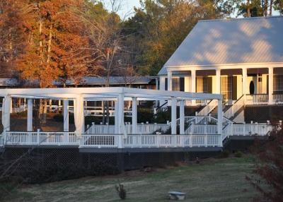 Wildwood Resort features 3 beautiful venues that are certain to appeal to any kind of event such as business meetings, weddings, dinners, reunions, or birthday parties. Our WJ Brown Conference Center was designed to replicate a River House in the 1800s, offering tranquility and comfort to your meeting. Our Pavilion is attached to the conference center and is completely enclosed with glass doors that can be opened to enjoy the outdoors. The Pavilion also has a full commercial kitchen so you or your caterer can have everything they need to make your event a success. Our most popular venue is our Outdoor Deck, which is adjoining to the conference center and looks out on our lovely landscaped stocked pond with a water fountain - a prime location for an outdoor wedding as you get to enjoy the breathtaking beauty that nature has to offer. To top it all off, our conference center also has a Bridal Dressing Suite & Groom's DressingSuite. Each facility is designed to enjoy the beautiful views and solitude of Wildwood Resort.